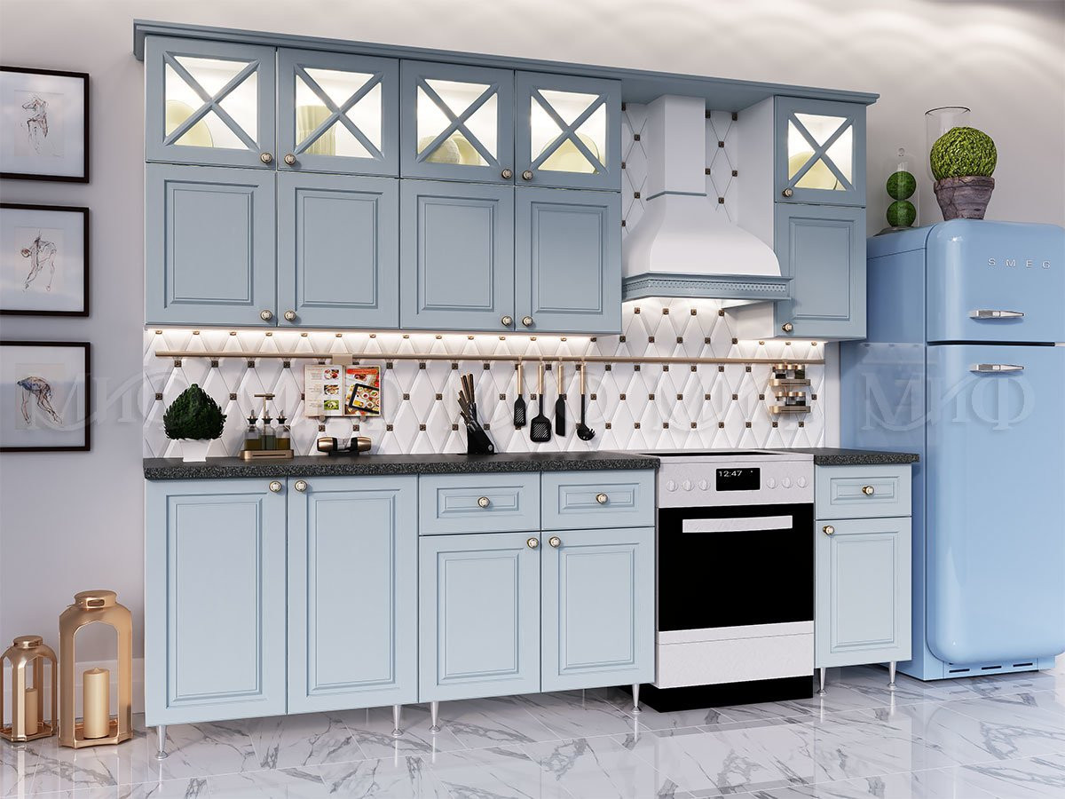 Кухня с увеличенными верхними шкафами имеет ряд преимуществ: делает помещение выше и просторнее, что немаловажно для маленького пространства и увеличивает место для хранения нужных вещей. Модульная кухня «Кармен» создает атмосферу благополучия, стабильности и хорошего настроения.